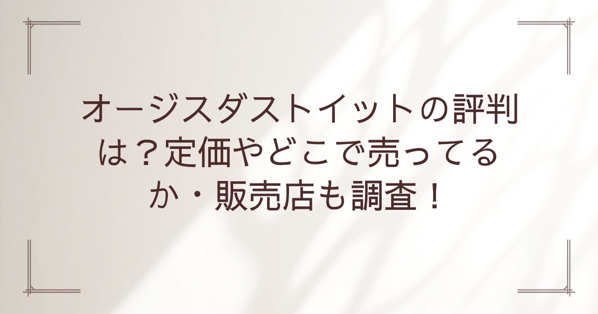 オージス(Osis)ダストイットの評判がどうなのか気になりますよね。