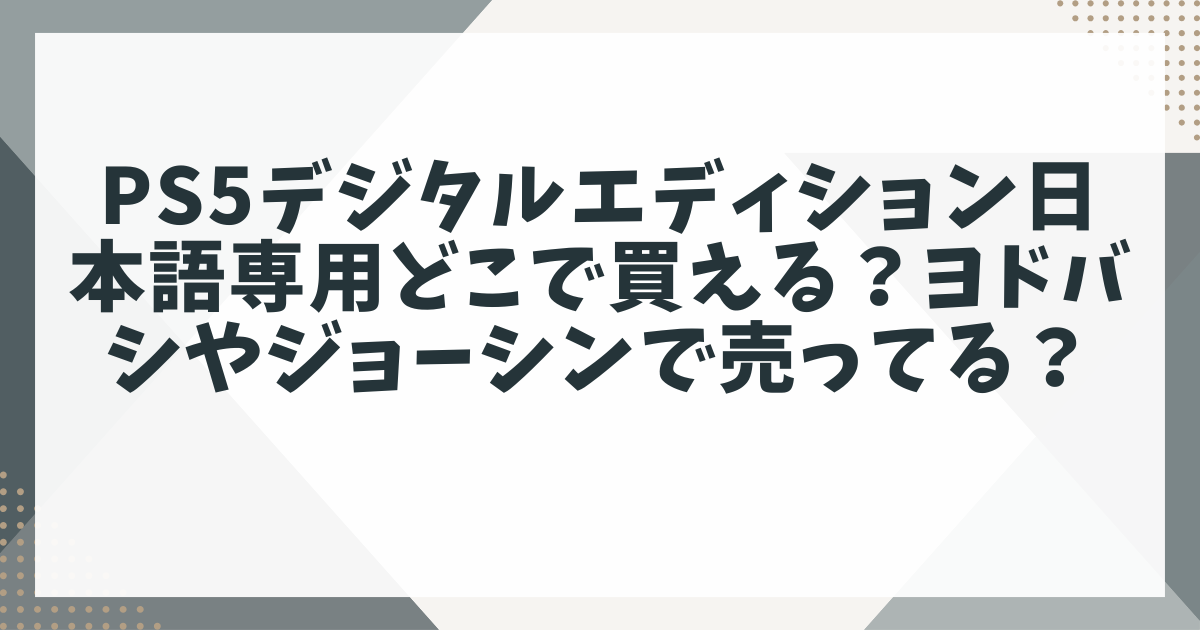 PS5デジタルエディション日本語専用どこで買える?ヨドバシやジョーシンで売ってる?